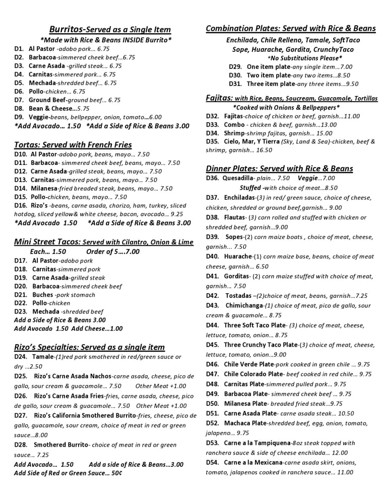 The welcoming atmosphere is enhanced by warm decor and a casual vibe, making it ideal for families and groups alike. With amenities such as outdoor seating, a drive-thru, and a military discount, Rizo's is designed for maximum convenience and comfort. From delicious food to friendly service, Rizo's Restaurant promises an unforgettable dining experience that captures the heart of Mexican cuisine.